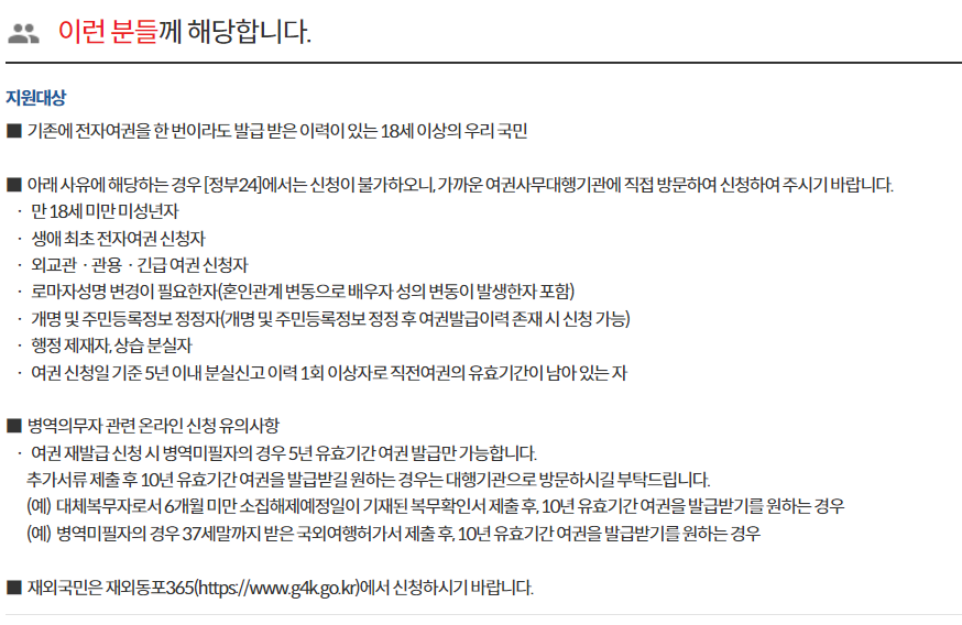 여권 재발급 온라인 신청은 기존에 전자여권을 한 번이라도 발급받은 이력이 있는 18세 이상의 우리 국민에 한해서 가능합니다.